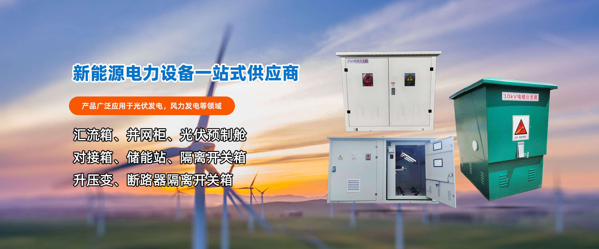 公司生產匯流箱、并網柜、光伏預制艙、對接箱、儲能站、隔離開關箱、升壓變、斷路器隔離開關箱等
